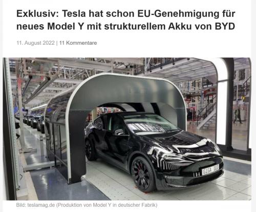 但是双方一直保持缄默,直到去年6月,比亚迪副总裁廉玉波在一次采访中证实了双方的合作,不久后到了2022年8月,特斯拉在公开报道中正式确认,德国柏林工厂生产地产特斯拉Model Y装配比亚迪刀片电池。