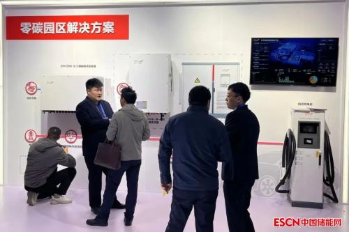 在零碳园区解决方案展示区,科华数能带来了先进的工商业光储充一体化产品方案,包括SPI系列三相组串式逆变器、BCS系列壁挂式储能变流器和立柜式储能一体化电源、iStoragE系列光储一体机、直流快充充电桩及EMS能量管理平台等。相比去年,产品阵容更加强大,系统更智能、功能更全面。