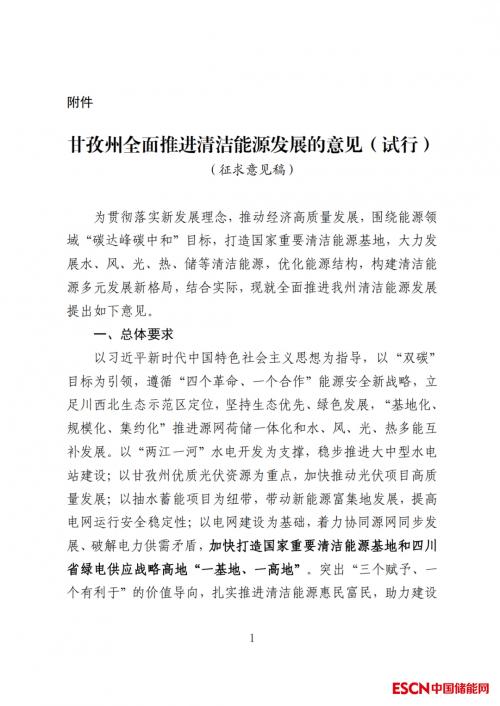 附件:甘孜州全面推进清洁能源发展的意见(征求意见稿)