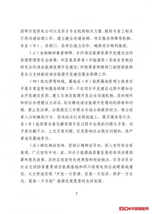 中国储能网讯:近日,四川甘孜藏族自治州发改委发布《甘孜州全面推进清洁能源发展的意见(征求意见稿)》民意征集。