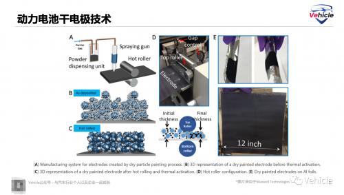 特斯拉设计4680电池时,创新引入了干电极技术,具体过程为不使用溶剂,直接将少量(约5-8%)细粉状PTFE粘合剂与正/负极粉末混合,通过挤压机形成薄的电极材料带,再将电极材料带层压到金属箔集