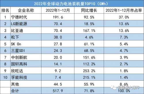 再看锂电池前十大厂商,同样被中日韩三国包圆了。