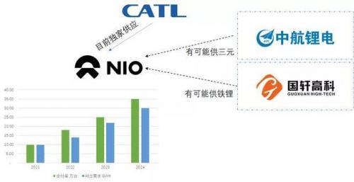 随着蔚来的产量进一步增加,长期选择独家供应商的可能性在降低。目前来看,在低成本的铁锂方向,国轩高科有可能在前期进展。在中高端100kWh的版本方面,中航锂电入驻到合肥产业园,也打开了将来被蔚来选择的可能性。当然这些都是猜测,具体选择怎样还是以实质性公告为准。