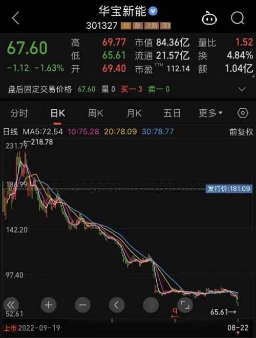 然而,仅仅一年后,华宝新能的股价却跌至66.77元/股,跌幅高达71.9%,市值蒸发了近300亿元。这究竟是怎么回事?