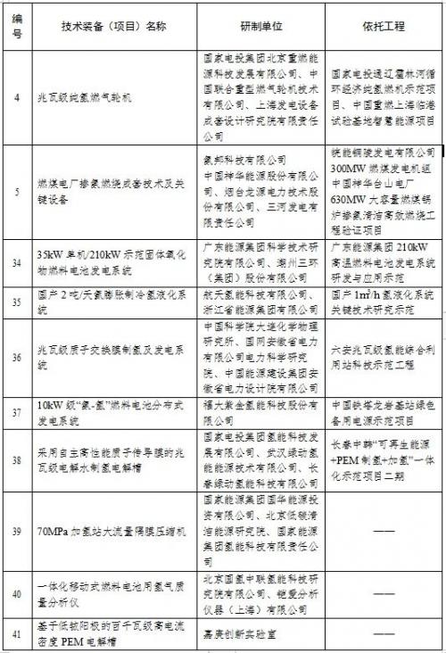 研制单位包括国家电投、神华、皖能、浙能、广东能源集团、航天氢能、潮州三环、福大紫金等企业。技术范围涵盖氢燃气轮机、掺氨燃烧、固体氧化物燃料电池、氢液化、质子交换膜制氢、氢-氨燃料电池、兆瓦级电解槽、隔膜压缩机、氢气质量分析仪、PEM电解槽等。