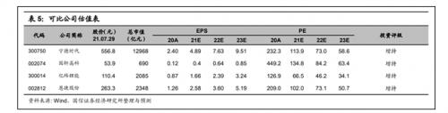 根据国信证券预测,在股价和市值不变的情况下,宁德时代2021年-2023年的净利润需要维持104%/56%/25%的增速。按照国信证券的预测,宁德时代在2023年的市盈率将回归至60倍左右,估值回到合理区间。