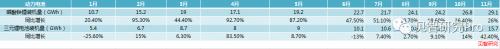 由于国内的新能源汽车的整体基数变大,新能源汽车的销量同比增速也已经从去年的95%左右,一路降至今年11月的40%以下,这也因此将动力电池的产量和装机量的增长速度同步带至低位。