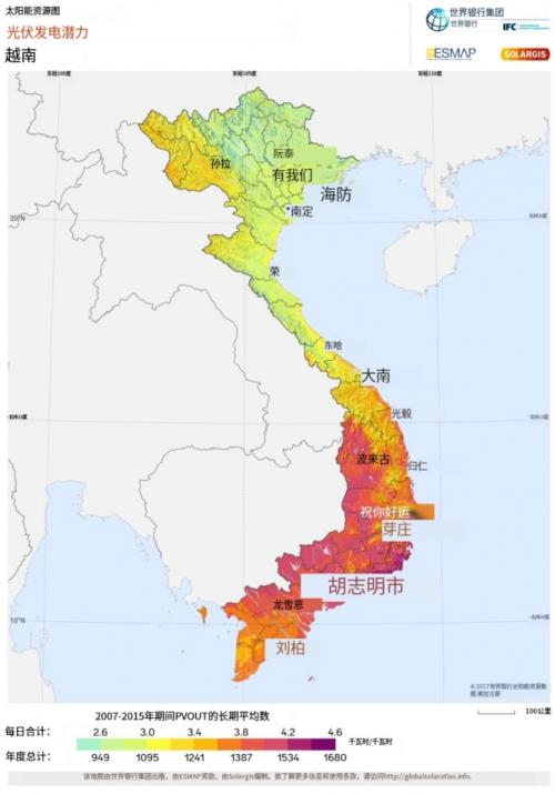 越南太阳能发展潜力巨大,特别是中部和南部地区,中南部地区年平均日照时数为2000至2600小时/年。