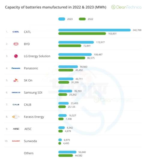 除了宁德时代,比亚迪、LG以及松下等企业也都是全球主要的动力电池供应商。