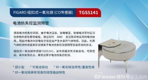 工采网提供一氧化碳传感器TGS5141,该传感器具有灵敏度高、可靠性好、寿命长等优点,非常适用于电池热失控检测。