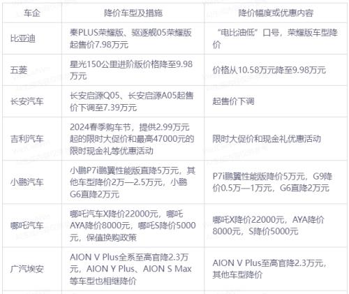 此外,小鹏汽车、哪吒汽车、广汽埃安等约10个厂商,纷纷加入价格战。