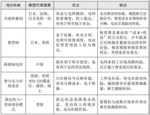 表3国内外抽水蓄能电站主流电价机制比较