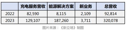 根据财报数据,能链智电2023年共录得3.2亿元人民币的营收,同比增幅达到了245%。财报中将这个增长主要归结为充电服务网络的扩张,以及公司能源解决方案项目的强劲交付。当然从实际的营收增量贡献上说,能源解决方案才是真正的主力。
