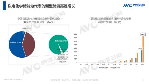 储能温控设备是电化学储能行业中必不可少的一环,而电化学储能在我国新型储能项目中占据主导地位。根据中关村储能产业技术联盟数据,截至2023年底,中国已投运电力储能项目累计装机规模86.5GW,其中新型储能继续高速发展,新增投运规模21.5GW,三倍于2022年新增投运规模7.3GW,在储能市场中占比达39.9%;而在新型储能市场中,以锂离子电池为代表的电化学储能方式扮演着绝对主力的角色,其市场占比超98%。