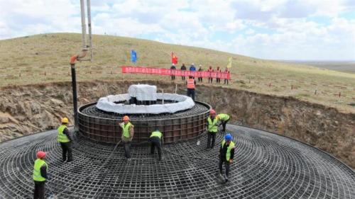 近日,三峡能源内蒙古分公司全力以赴加快三峡乌兰察布新一代电网友好绿色电站示范项目建设步伐,着力推进风机基础浇筑进度,展现出活力十足的建设“热度”与“速度”。