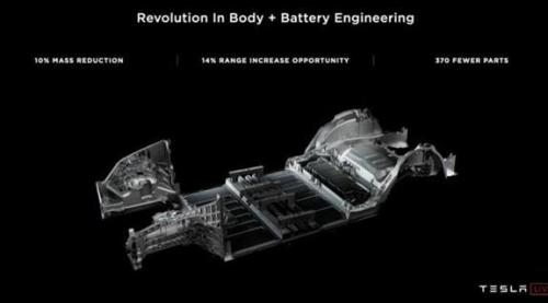马斯克指出,特斯拉未来将推出全新的电池包,推动汽车车身一体化结构的设计。这种电池包优于以往的电池包,包括电芯有更好的方式粘合,使得结构更加紧凑。在重量、结构和安装在车辆位置上有更好的优化提升。可以减重10%,可能能带来14%的续航增加。这一环节可以降低成本7%。