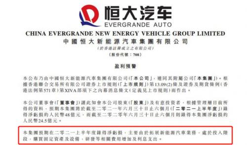 8月9日,恒大汽车深夜发布2021年上半年盈利预警公告,预计2021年上半年净亏损额48亿元,是去年同期净亏损24.5亿元的两倍。公告称,今年上半年亏损主要是由于拓展新能源汽车业务,处于投入阶段,购买固定资产及设备、研发等开支有所增加。但是自2018年~2020年,恒大汽车每年的亏损额分别为14.28亿元、44.26亿元、77.4亿元,亏损持续扩大。