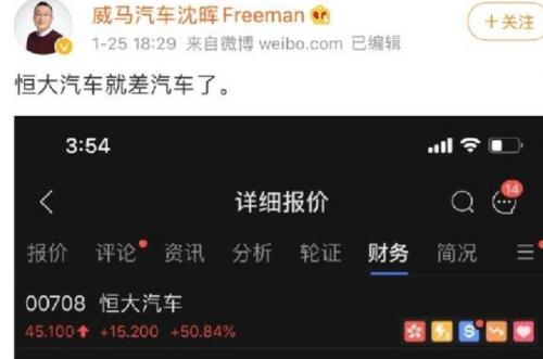 尽管威马汽车创始人沈晖在微博上有些“酸溜溜”地调侃,“恒大汽车就差汽车了”。但一台车没造出来的恒大市值已经直逼4000亿却是事实。