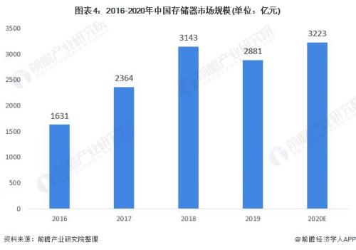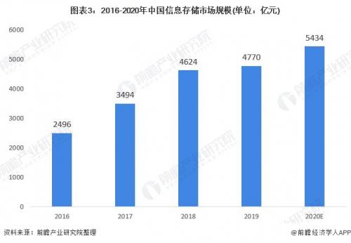 根据测算,2016年我国信息存储市场规模已经接近2500亿元,2019年更是高达4770亿元,2020年预计将突破5000亿元。