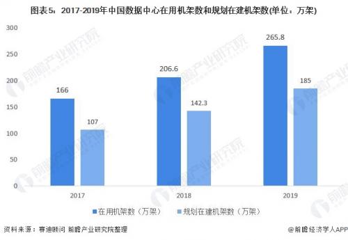 在数据中心方面,伴随着数字中国和大数据等国家战略的落地,全国数据中心建设驶入快车道,2019年我国在用数据中心机架数达到了265.8万架,同时规划在建的数据中心机架数有185万架。