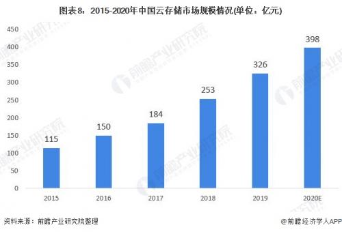 在云存储市场上,云计算、大数据、人工智能等技术的快速发展为我国云存储带来了前所未有的机遇,2019年我国云存储市场规模已经突破了300亿元,2020年云存储技术不断提高,企业级存储容灾、混和云存储等服务不断创新,预计2020年云存市场规模将接近400亿元。
