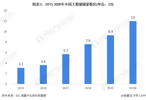 注:2019-2020年数据为前瞻基于IDC对大数据储量测算情况同时结合大数据储量当年及往年情况进行的测算。