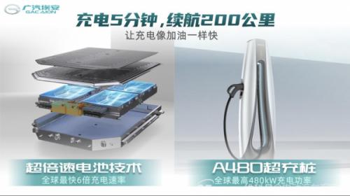 实现这一壮举,广汽埃安仰赖两大法宝――超倍速电池技术和全球充电功率最高的A480超充桩。