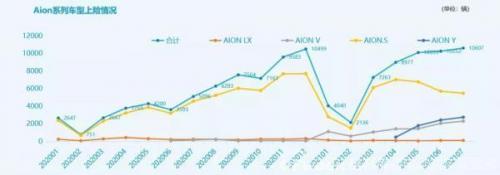 从上险数也可以看出,埃安系列产品今年以来的增势明显,AION Y/V两款车型增长势头也很猛。