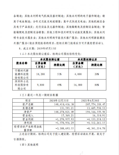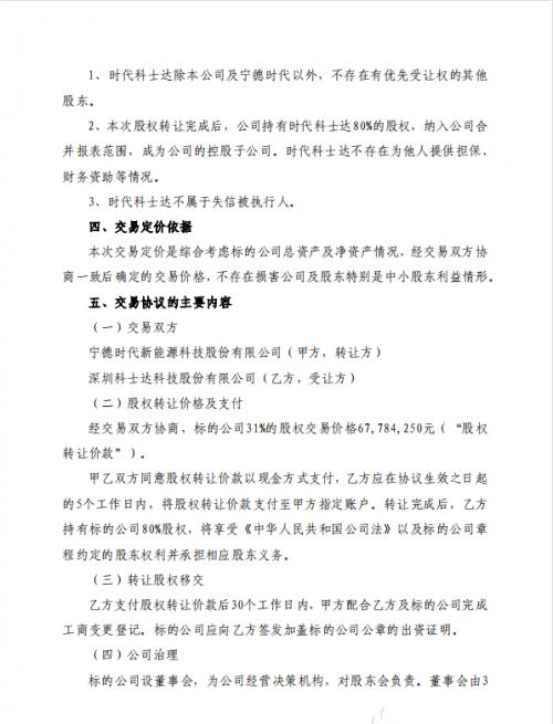 由此可知,上述股权转让交易完成后,宁德时代持有时代科士达的股权将变更为20%,不再享有控股权。