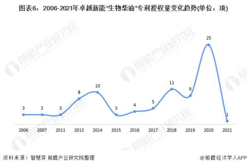 公司作为资源综合利用领域的高新技术企业,十分重视核心技术的创新与应用。在生物柴油业务方面,截至2021年9月2日,公司共有专利授权量85项;从变化趋势来看,2020年的专利授权量达峰值,为25项。