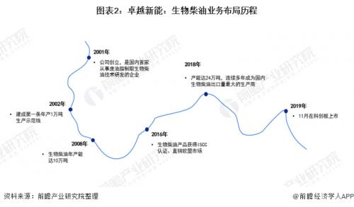 目前,卓越新能是我国生物柴油行业的龙头企业。公司于2001年创立,是国内首家从事废油脂制取生物柴油技术研发的企业;2002年,公司建成第一条年产1万吨的生产示范线;2008年,公司生物柴油年产能达10万吨;2016年,公司生物柴油产品获得ISCC认证;2017年以来,公司连续多年成为国内生物柴油出口量最大的生产商,2019年11月,公司在科创板上市。