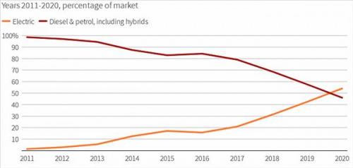 短短十年间,电动车在挪威的市占率从区区1%上升至超越半数,高油价和高纯电动车补贴功不可没。