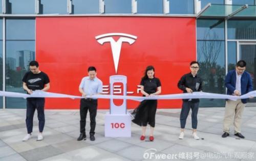 ■图说:9月29日,特斯拉宣布在上海的第100座超级充电站和第1000根超级充电桩正式在松江的科创云廊落成。