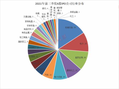 从IPO公司所属行业来看,前三季度机械设备行业(按申万一级行业统计,下同)IPO公司最多,达到59家,其次是电子行业的39家,接下来是医药行业的38家。上述三大行业IPO公司家数就占了前三季度IPO公司总数的逾1/3。