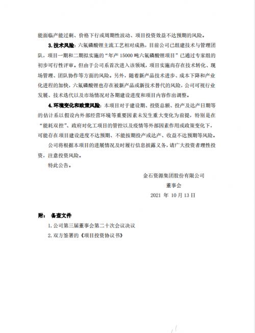 此次投资项目的实施,金石资源表示,是公司进入产业链下游科技含量高、附加值大的新能源、新材料领域的关键一步,有利于充分发挥公司的资源储备和原材料成本优势,拓展公司业务发展空间,创造新的盈利增长点,提升公司抗风险能力进而提高公司核心竞争力、促进公司高质量可持续发展
