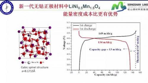 黄学杰认为,降镍的方向,关键的材料是镍锰酸锂,第一代材料是锰酸锂,一样的结构尖晶石结构,将其中1/4的锰换成镍后,负极搭配石墨,电压可以在4.5V以上,“磷酸铁锂电池的标准电压是3.2V,三元电池的标准电压是3.6V,能大到4.5V,能量密度就有优势。”