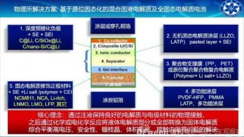 对此,李泓有两个方案,一种是把固态电解质生长在正负极颗粒表面,另一种则是在电芯化成或者在电极制造的过程中,将液态电解质或者是浆料转化为固态从而实现。
