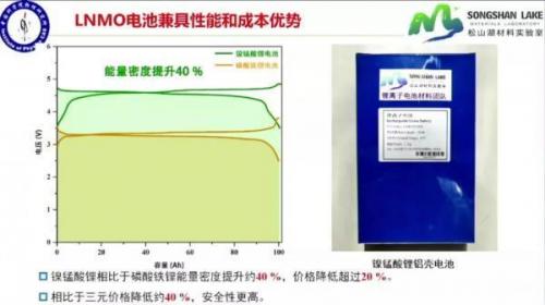 从产品性能上来看,黄学杰团队开发的镍锰酸锂相比磷酸铁锂能量密度提升约40%,价格降低超过20%,与三元电池相比,价格降低约40%,同时安全性更高。
