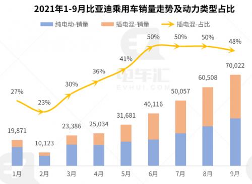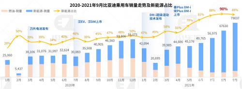 根据官方公布数据,9月比亚迪新能源乘用车销量达到79,037辆,电动化占比达到89%。此前比亚迪总裁王传福曾呼吁禁售燃油车引发舆论争议,但从数据来看,比亚迪有望成为全球首个实现完全电动化的传统整车企业(特斯拉、新势力除外)。