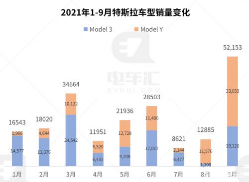 7月初国产Model Y标准续航版上市以来,9月成为该车型的集中交付高峰期, Model Y销量达到3.3万辆,同时Model 3销量回升至1.9万辆;受制于上海工厂产能,国内交付提升的同时,海外出口数量急剧下滑至3853辆,从近半年的历史数据来看,国内销售和海外出口呈现此消彼长的波动交错走势。