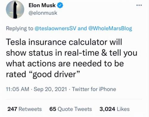这款车险产品,正是一周前特的斯拉2021股东大会上,马斯克所宣布的“实时驾驶行为(real-time driving behavior)”保险。