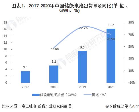 受中国“新基建”的推动,以及海外需求市场的刺激,国内储能锂电行业进入起步期,示范应用项目加快建设。2017-2020年,我国储能锂电池出货量逐年增长,2020年达到16.2GWh,同比增长70.53%。
