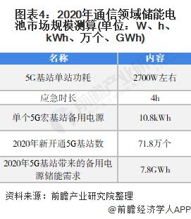 2020年5G基站备用电源储能需求为7.6GWh