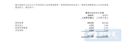 目前恒大旗下有地产集团、恒大冰泉、大健康产业、恒大童世界、房车宝集团、恒腾网络、恒大物业、恒大汽车八大业务板块。2020年,恒大实现营收5072.5亿元,其中销售物业占总营收比中最大,2020年度实现营业收入4945.5亿元,租金收入为12.75亿元,物业管理服务营收65.55亿元,其他业务实现营收48.68亿元。恒大汽车2020年实现营业收入154.87亿元,但在这其中仅有1.88亿元的营收是由新能源汽车业务贡献的。