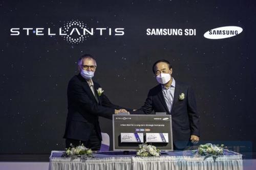 10月26日,Stellantis集团首席执行官唐唯实(Carlos Tavares)和三星集团总裁兼首席执行官Young-hyun Jun共同参观了三星集团位于匈牙利Goed的电动汽车工厂,两家集团也于当天签署了共同组建一家合资公司的谅解备忘录。