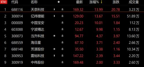《科创板日报》(编辑郑远方),今早,4680电池板块大幅走强。截至午间,中国宝安、宁波精达涨停,亿纬锂能、天奈科技涨超10%,当升科技等跟涨。