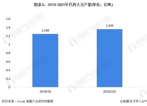 因巴西大豆的收获已完成,干旱天气对去年种植的大豆影响较小。据Conab发布的数据,2019-2020年巴西大豆产量为1.248亿吨;同时,Conab将2020-2021年大豆产量预测从5月的1.354亿吨上调至1.359亿吨。但如果干旱继续持续下去,巴西大豆的产量仍将受到影响。