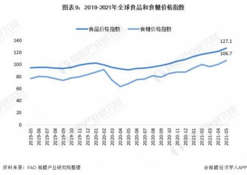 作为“世界粮仓”,巴西干旱导致的粮食价格上涨已影响到了全球食品价格指数的上涨。2021年6月3日联合国粮农组织(FAO)公布了2021年5月粮农组织食品价格指数,数据显示2021年5月食品价格指数大幅飙升至127.1点,已攀升至2011年9月以来的最高水平。其中,受干旱的天气条件影响巴西的食糖收获延迟、作物减产,2021年5月,全球食糖价格指数较4月上涨6.8%。