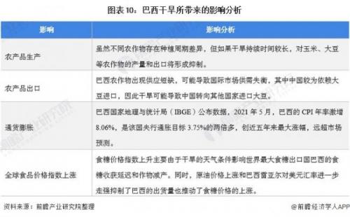 综上所述,巴西干旱带来的影响主要包括巴西农产品生产、出口、通货膨胀,进而影响到全球食品价格的上涨。