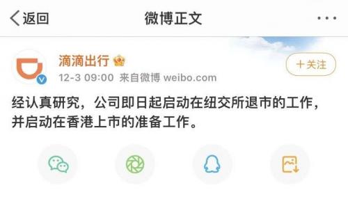 12月3日,早晨9:00,滴滴官方正式且准时地宣布了在美国退市的决定,并同时开启了港股上市的计划。寥寥数语,滴滴是将自己安排的明明白白,甚至吃瓜群众们都开始以为一切万事大吉的时候,滴滴的股价却“口嫌体正直”,纵身一跃跳到了6.07的股价,先跌了22.18%为敬。
